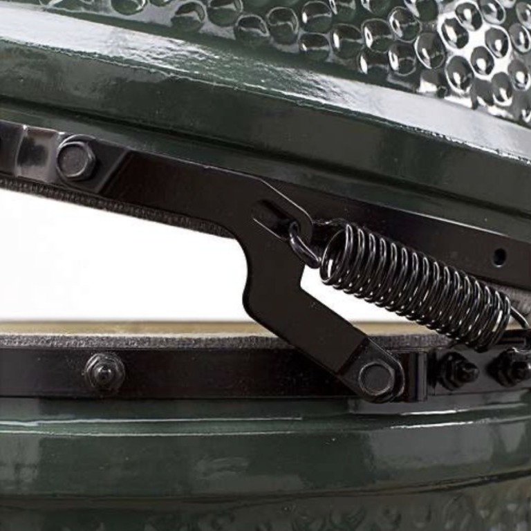Пружина обеспечивает плавную работу петли, облегчая подъем крышки гриля Big Green Egg.