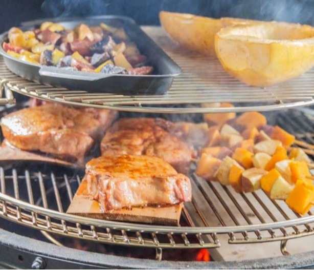 Расширьте возможности вашего гриля! Эта стальная мультиуровневая решетка от Big Green Egg позволяет одновременно готовить разнообразные блюда. Просто установите ее поверх основной решетки, создав 10-сантиметровый зазор, и удвойте полезную площадь приготовления. Идеально подходит для модели XLarge.