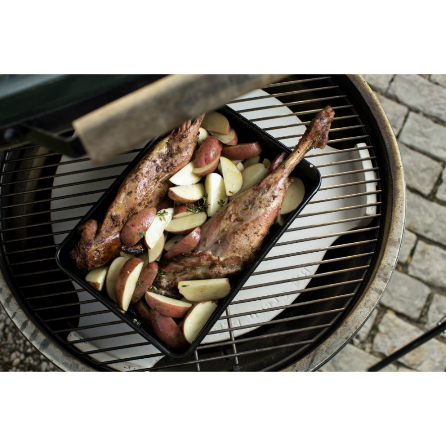 Этот аксессуар является обязательным для освоения техник непрямой термообработки, таких как выпекание, запекание, копчение и медленное томление. «ConvEGGtor» выполняет функцию барьера, отделяя продукт от прямого жара, исходящего от раскаленных углей. Его продуманная конструкция с ножками слегка приподнимает жарочную решетку, формируя между ней и отсекателем воздушную мембрану.