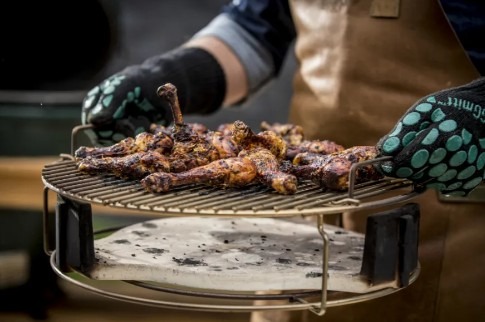 Этот аксессуар незаменим для таких техник, как выпекание, запекание, копчение и медленное томление. «ConvEGGtor» эффективно блокирует прямой жар от углей, защищая ваш продукт. Его специальные ножки приподнимают решетку, создавая воздушную прослойку между ней и раскаленным отсекателем.