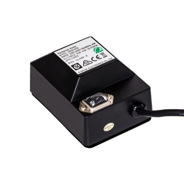 Встроенный двигатель мощностью 4 Вт способен справиться с нагрузкой до 15 кг мяса. Благодаря классу защиты IPX4, вы можете смело использовать вертел даже в условиях переменчивой погоды, при условии подключения к водонепроницаемой розетке.